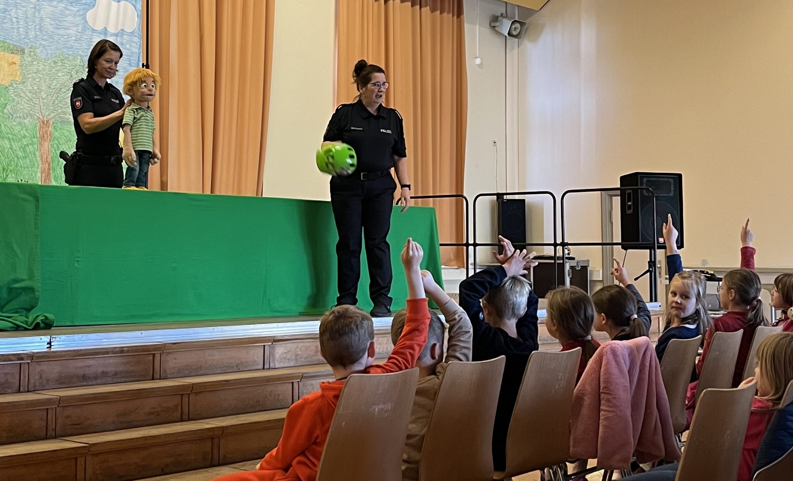 Auch in diesem Jahr waren die 1. Klassen bei der Puppenbühne der Polizei. Wir durften in der Wilhelm-Raabe-Schule zu Besuch sein. Die Kinder waren auf einer Schatzsuche mit Freddy und lernten viel über die Sicherheit im Verkehr. Zum Schluss gab es für jedes Kind einen Reflektor-Smiley für den Ranzen. Ein schöner und informativer Ausflug.